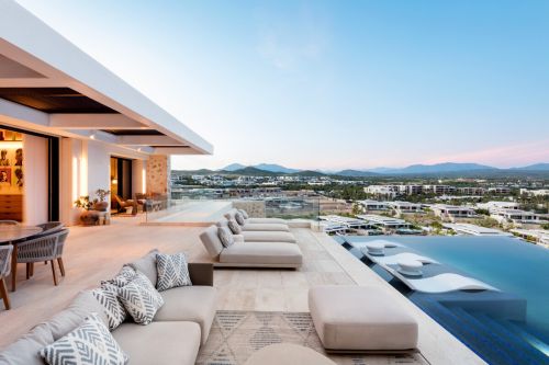Perched between the Sea of Cortez and the Cabo mountains, Hillside Villa 9B offers the perfect blend of indoor and outdoor living. This stunning 3-bedroom, 3.5-bath residence boasts breathtaking ocean and mountain views. Relax on the expansive terrace with an infinity pool and soak in the coastal Baja scenery.